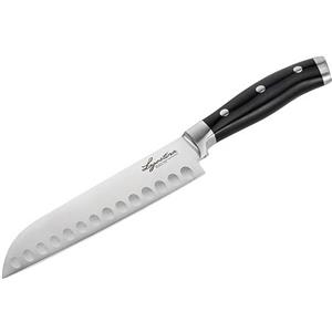 Lagostina Coltello Santoku Forgiato, Inossidabile, Manicatura Ergonomica, Nero e Acciaio, Lunghezza Lama 18 cm