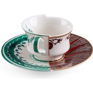 Seletti CHUCUITO - Set di tazza da tè e caffè ibrido con piattino in porcellana New Bone, design moderno e motivo floreale