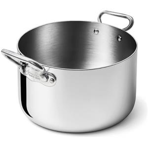Pentole Agnelli Casseruola Alta Aluinox 3ply 24 cm con Due Maniglie Inox Lucido - Capacità 7,2 L