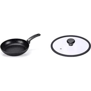 Moneta Etnea Evolution Padella 24cm, anche per induzione, 100% Made in Italy & Etnea Coperchio Vetro con Bordo in Silicone, 24 cm