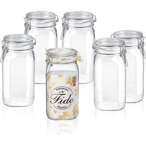 Bormioli Rocco Vaso Ermetico Fido in Vetro 1000 ml con Chiusura in Metallo e Guarnizione in Gomma - Set da 6 Pezzi