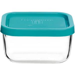 Bormioli Rocco Frigoverre Classic Contenitore Porta Alimenti Rettangolare in Vetro 9,5x7,3 cm con Coperchio Ermetico Azzurro in Tavola e Cucina