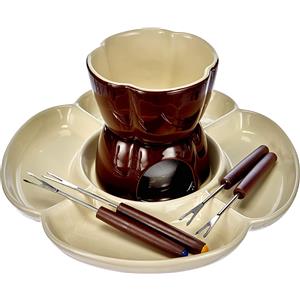 Excelsa Servizio Fonduta Cioccolato 8 Pz in Ceramica Marrone con Piatto e Forchettine