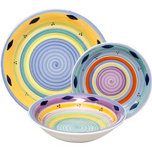 Villa d'Este Servizio di Piatti Sicilia per 6 Persone - 18 Pezzi in Porcellana e Gres con Finitura Lucida