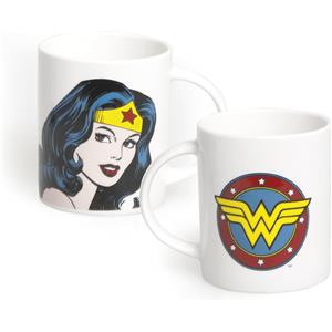 Excelsa Mug Wonder Woman 300 ml in Porcellana con Doppio Decoro, Lavabile in Lavastoviglie e Resistente al Microonde