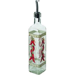 Excelsa Oliera Decorata Peperoncino in Vetro con Beccuccio Versatore - Capacità 473 ml
