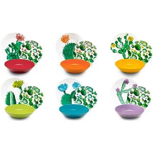 Excelsa Servizio Piatti Color Cactus 18 Pezzi in Porcellana e Ceramica, Multicolore per 6 Persone