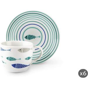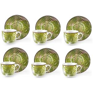Excelsa Set 6 Tazzine da Caffè in Porcellana Decorata con Piattino - Capacità 90 ml, Lavabili in Lavastoviglie e Utilizzabili in Microonde