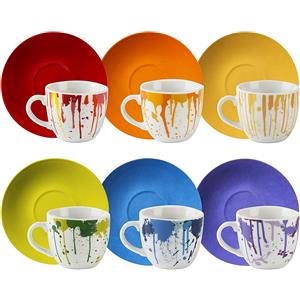 Excelsa Set 6 Tazzine da Caffè in Porcellana Dripping - Capacità 90 ml, Lavabili in Lavastoviglie e Utilizzabili in Microonde