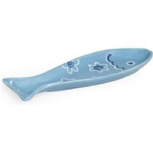 Excelsa Ocean Piatto Portata Pesciolino in Ceramica Azzurro - 27x12 cm, Lavabile in Lavastoviglie e Utilizzabile in Microonde