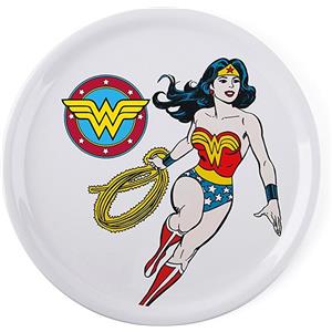 Excelsa Piatto Pizza Wonder Woman Ø 31 cm in Porcellana Bianco, Lavabile in Lavastoviglie e Utilizzabile in Microonde
