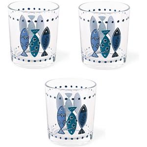 Excelsa Set di 3 Bicchieri in Vetro Decorati Ocean - Lavabili in Lavastoviglie