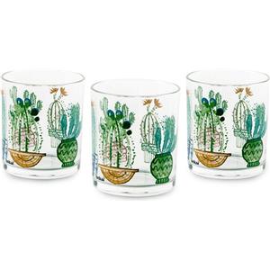 Excelsa Set 3 Bicchieri Acqua Cactus in Vetro Decorato - Capacità 25 cl, Trasparenti e Funzionali