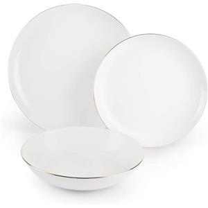 Excelsa Gold Servizio Piatti 18 Pezzi in Porcellana Bianco con Bordo Oro per 6 Persone