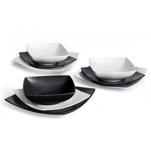 Excelsa Eclipse Servizio Piatti Quadrati in Ceramica, 18 Pezzi, Bianco e Nero per Fino a 6 Persone