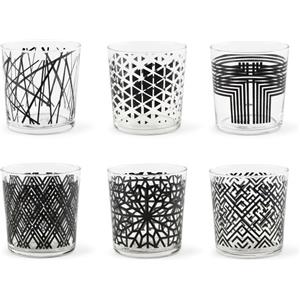 Excelsa Set 6 Bicchieri Emily in Vetro Trasparente da 350 ml con Decorazioni Black & White