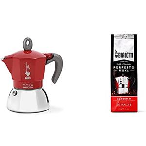 Bialetti New Moka Induction Caffettiera Adatta All'Induzione, 4 Tazze, 150 Milliliters, Alluminio, Rosso & Perfetto Moka Caffè Macinato, Gusto Classico - 1 X 250 Gr