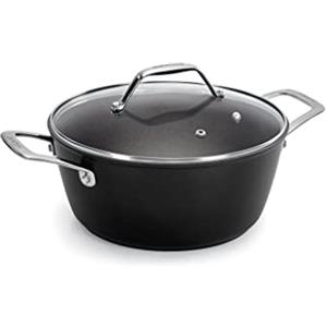 Barazzoni Casseruola Black Titan Pro 20cm con Coperchio in Vetro, Manico in Acciaio Rivettato, Rivestimento Antiaderente Titan Pro (5 Strati)