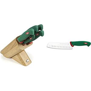 Sanelli 931605 Ceppo Coltelli Leck, Legno, Verde/Rosso, 5 unità & Premana Professional Coltello Giapponese Olivato, Acciaio, Verde/Rosso, 31.0x3.0x6.0 cm