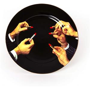 SELETTI Piatto in Porcellana Ø27cm Rossetti e Lipsticks con Bordo Dorato, Lavabile in Lavastoviglie