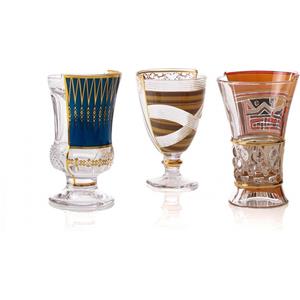 SELETTI Set di 3 Bicchieri in Vetro Hybrid Aglaura - Design Ibrido con Decorazioni Orientali e Occidentali