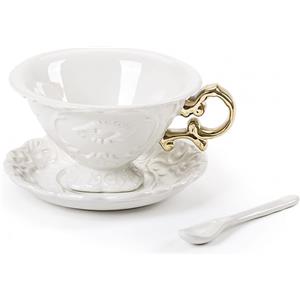 Seletti I-Wares Gold Set da Tè in Porcellana con Manico Oro e Piattino Coordinato