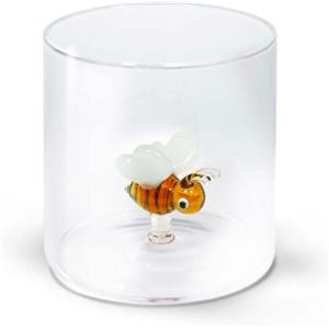 WD Lifestyle Bicchiere in Vetro Borosilicato 250 ml con Decoro Ape - Artigianale e Unico