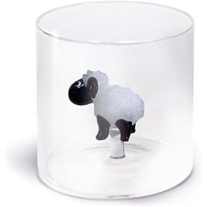 WD Lifestyle Bicchiere in Vetro Borosilicato 250ml con Decorazione Pecora - Artigianale e Unico