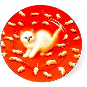 Seletti Piatto in Porcellana Gattini con Bordo Dorato - Ø 27 cm, Lavabile in Lavastoviglie