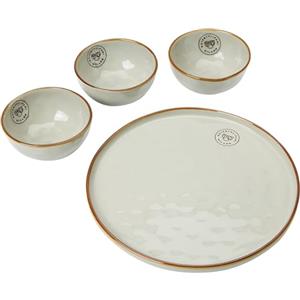 ROSE & TULIPANI MILANO Thun Rose & Tulipani, Set Aperitivo 1 Piatto e 3 Coppette di Color Grigio Perla in Ceramica con Bordo Dorato, Linea Concerto, Ø 27 cm