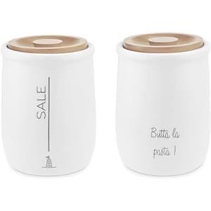 La Porcellana Bianca Barattolo per Sale Grosso 0.8L con Tappo in Legno di Quercia - Collezione Gli Onesti