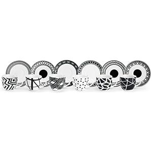 Excelsa Emily Set di 6 Tazzine da Caffè in Porcellana con Piattino - Bianco/Nero, Capacità 90 ml