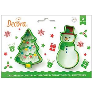 Decora 0255069 Set 2 Tagliapasta Albero Natale E Pupazzo, In Plastica, per Creare Decorazioni in Pasta di Zucchero o di Gomma, Made in Italy, Design originale. Confezione da 2 pezzi.