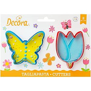 Decora 0255075 Set 2 Tagliapasta Farfalla E Fiore, In Plastica, Il Kit Ideale per Creare Decorazioni in Pasta di Zucchero o di Gomma, Made in Italy, Design originale. Confezione da 2 pezzi.