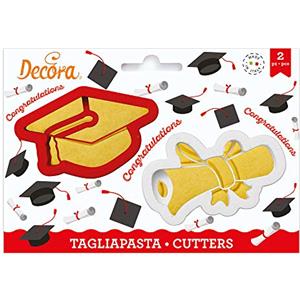 Decora 0255047 Set 2 Tagliapasta Laurea In Plastica, Il Kit Ideale per Creare Decorazioni in Pasta di Zucchero o di Gomma, Made in Italy, Design originale. Confezione da 2 pezzi.
