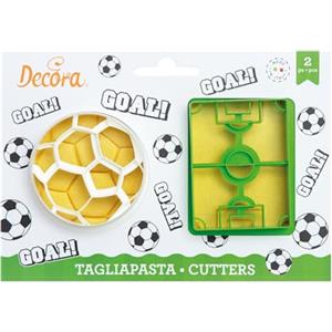 Decora 0255048 Set 2 Tagliapasta Calcio, Pallone e Campo di Calcio, Il Kit Ideale per Creare Decorazioni in Pasta di Zucchero o di Gomma, Made in Italy, Design originale. Confezione da 2 pezzi.