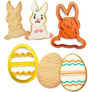 Decora 0255233 Set Decorativo Pasqua, 2 Tagliapasta Coniglio Bunny E Uovo e 4 Stencil decorativi, ideali per creare biscotti decorati tridimensionali, Made in Italy, Confezione da 6 pezzi.