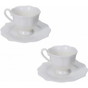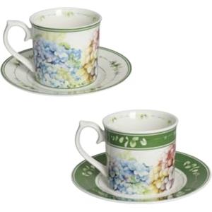 Brandani Set da Caffè Flora - 2 Tazzine e Piattini in New Bone China con Design Floreale