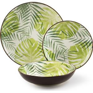 Excelsa Servizio Piatti Panama 18 Pezzi in Stoneware con Decoro Foliage per 6 Persone