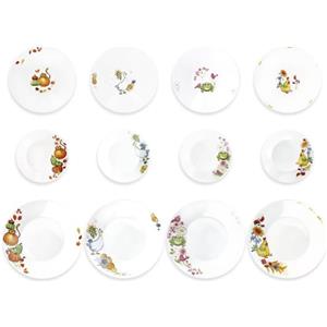 Brandani Servizio Tavola 12 PZ in Porcellana 4 Stagioni - 4 Piatti Piani, 4 Fondi e 4 Piattini