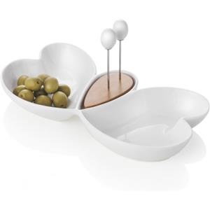 Brandani Antipastiera Cuor di Butterfly 28x14cm in Porcellana e Bamboo con 2 Forchettine in Acciaio Inox