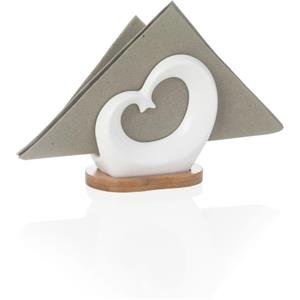 Brandani Portatovaglioli Doppiocuore in Porcellana Bianca con Supporto in Bamboo - Elegante e Romantico