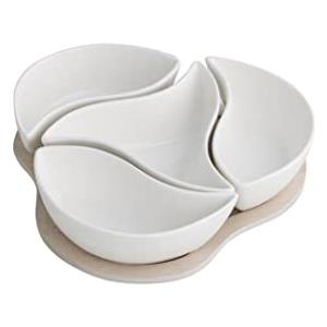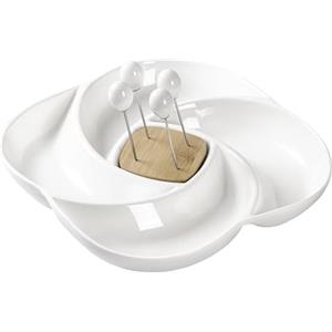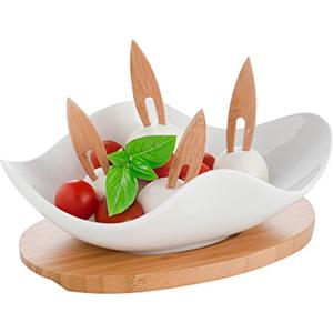 Brandani Antipastiera Nuvola in Porcellana Bianca con 4 Forchettine in Bamboo - Design Elegante e Funzionale