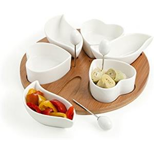 Brandani Antipastiera Cupido in Porcellana Bianca con Supporto in Bamboo e 3 Forchettine in Acciaio Inox