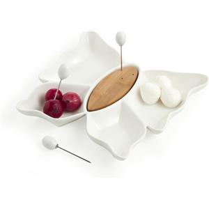 Brandani Antipastiera Butterfly in Porcellana Bianco con 4 Scomparti e 3 Forchettine in Acciaio
