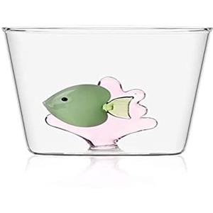 Ichendorf Milano Marine Garden Bicchiere Acqua in Vetro Borosilicato con Pesce Verde e Alga Rosa - 35 cl