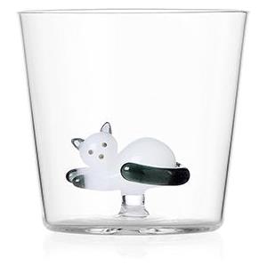 Ichendorf Milano Tumbler Tabby Cat in Vetro Borosilicato - Gatto Bianco con Coda Grigia, Capacità 35 cl