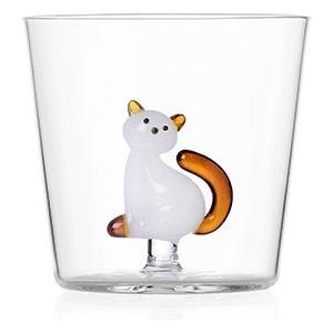 Ichendorf Milano Tumbler Gatto Bianco con Coda Ambra - 35 cl, Vetro Borosilicato, Design Alessandra Baldereschi