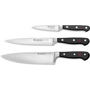 WÜSTHOF Classic Set di 3 Coltelli da Cucina in Acciaio Inossidabile con Manici in Plastica Nera