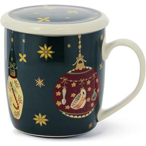 Neavita Infusiera Verde Natale 340 ml - Porcellana con Filtro in Acciaio e Coperchio Ceramico